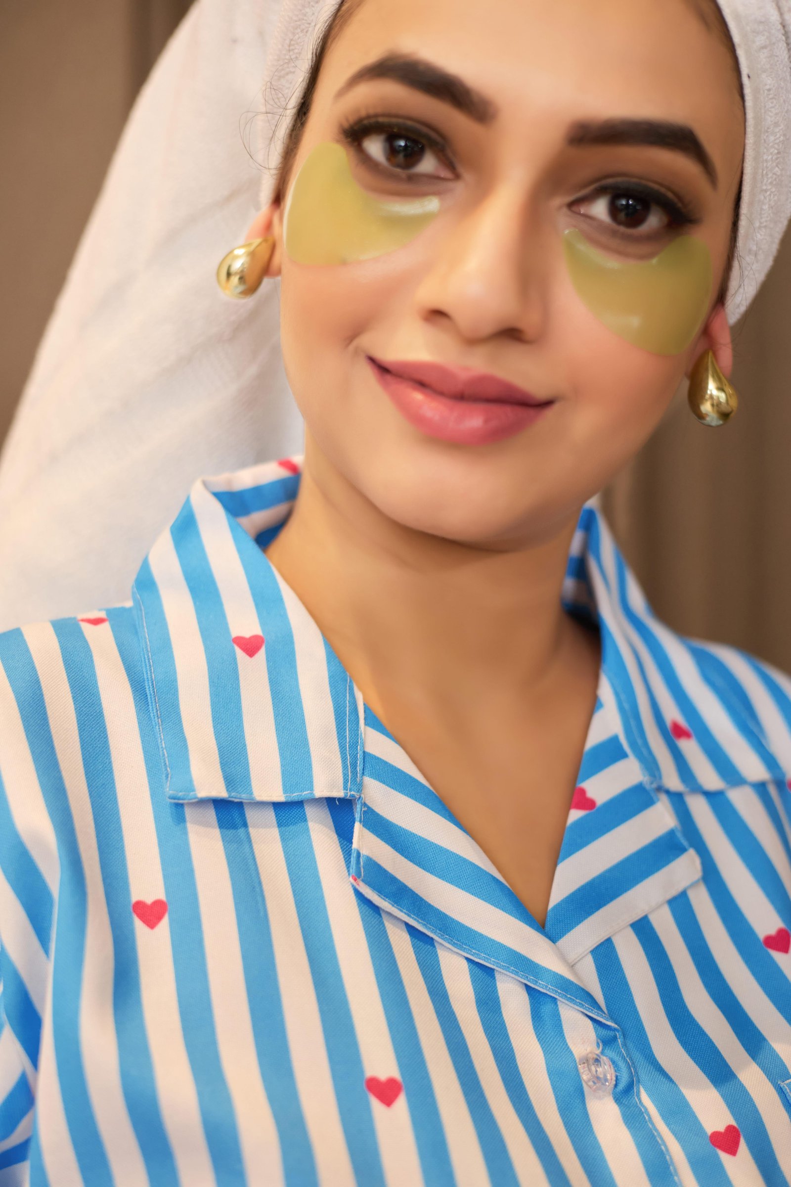 Step into relaxed elegance with the Blue Breeze Stripe Heart Print Nightwear Set. Designed with refreshing sky blue and white vertical stripes, this stylish night suit is highlighted with tiny pink heart motifs for a cute and modern touch. The set includes a full-sleeve button-down shirt and matching straight-fit pajama pants, offering a perfect balance of comfort and chic home style.