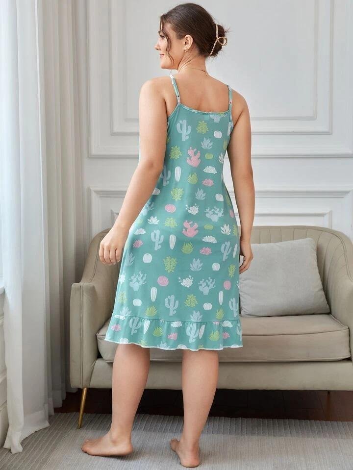 Mint Green Cactus Print Spaghetti Strap Mini Dress