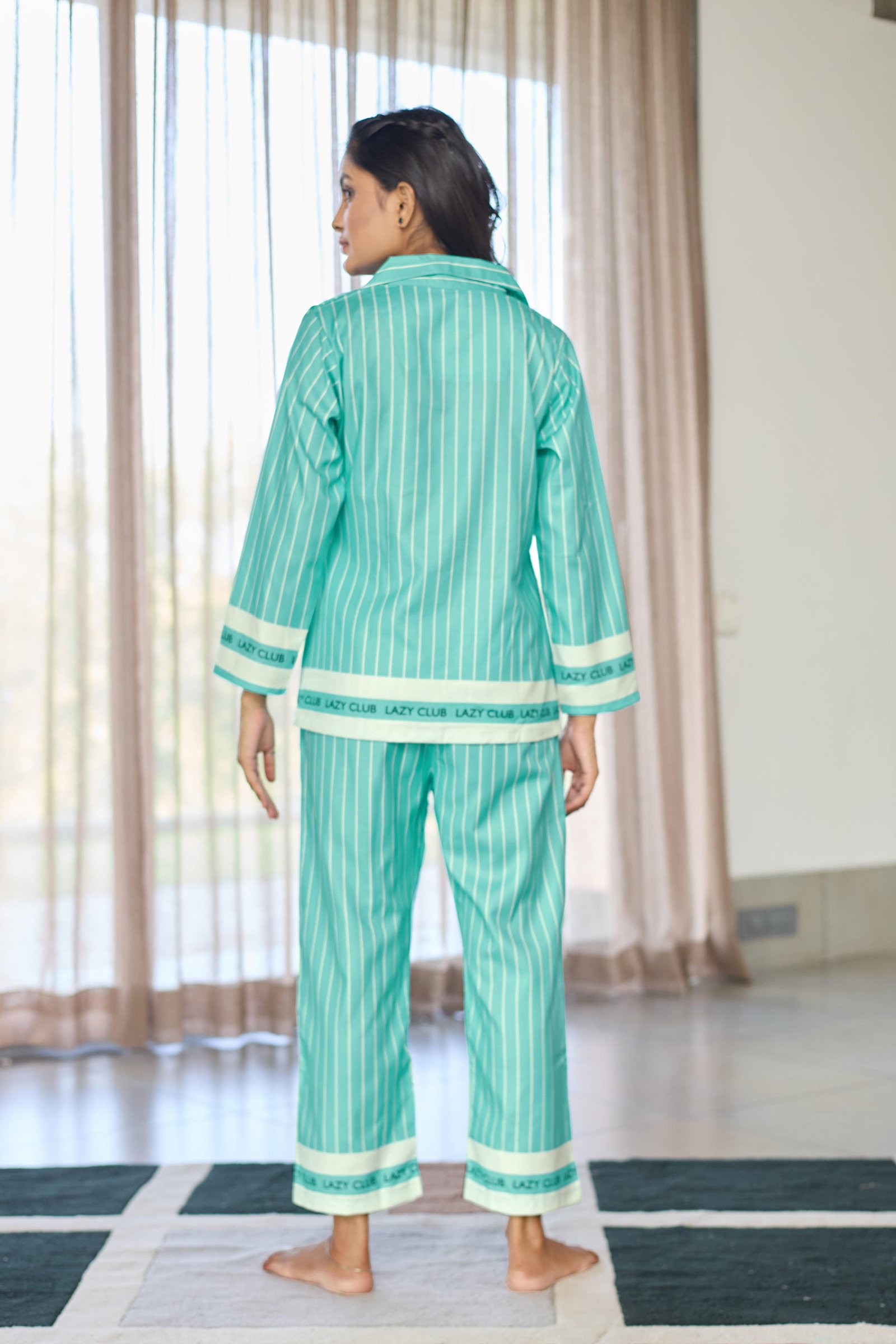 Lazy Club Mint Green Striped Organic Cotton Pajama