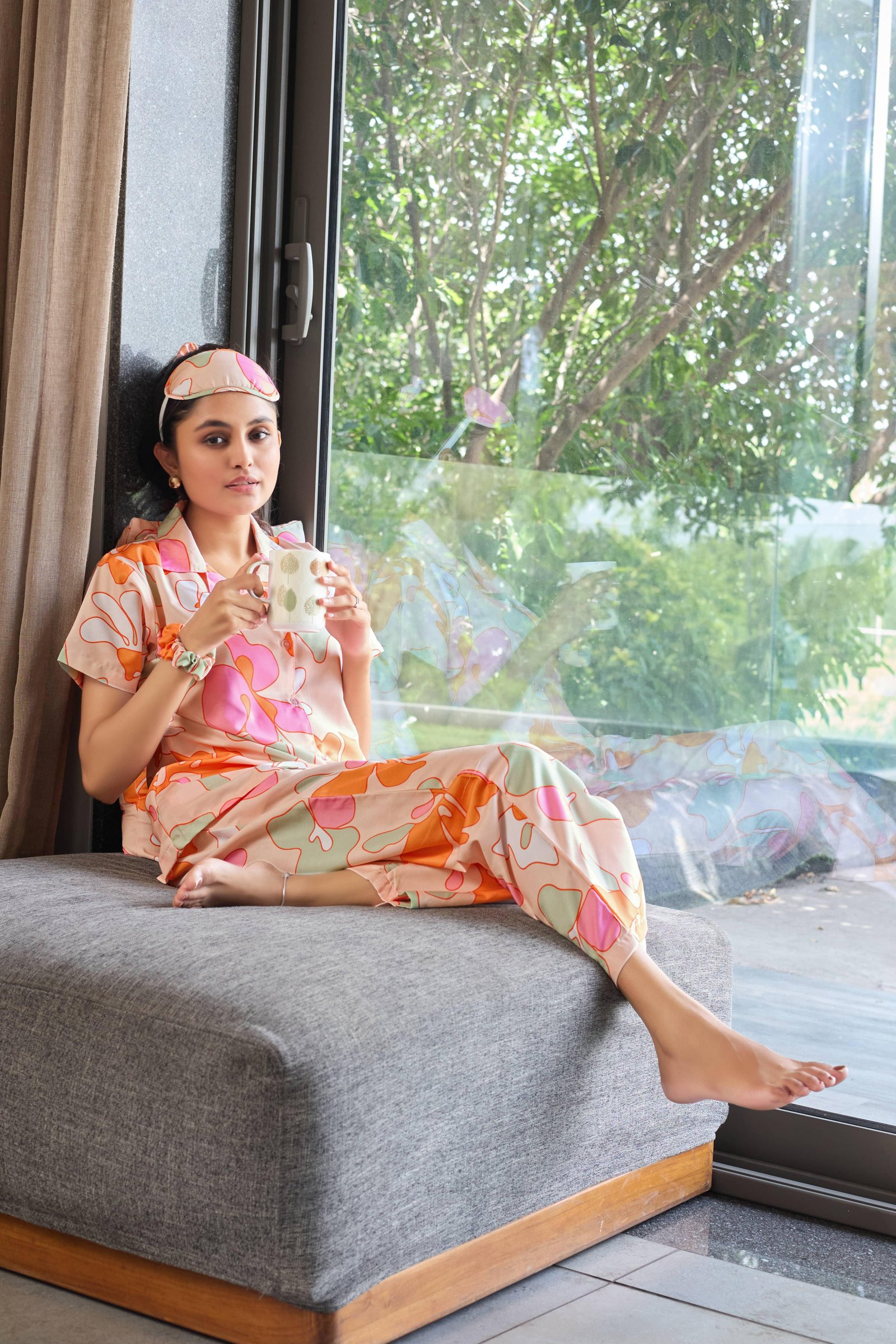 Peach Bloom Abstract Lounging Pyjamas