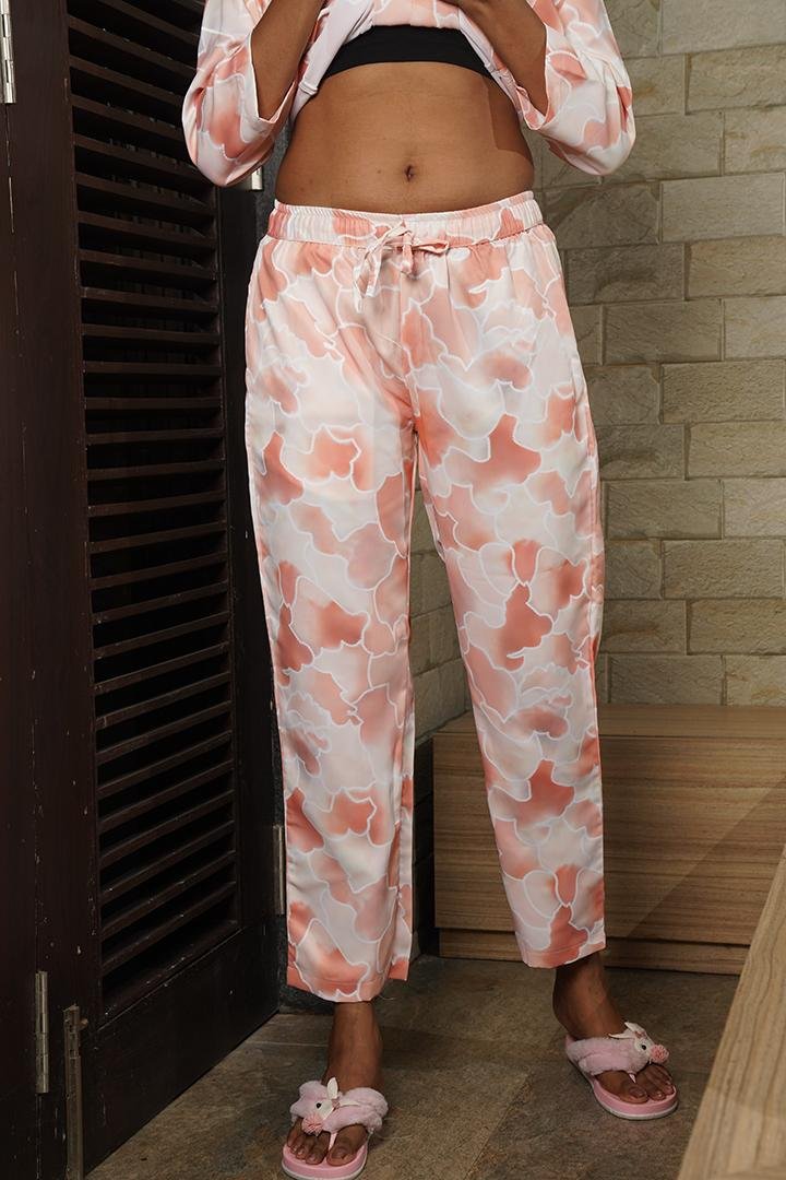 Unwind in soothing style with this Women’s Peach Abstract Print Nightwear Co-ord Set, designed in calming shades of peach, blush, and white. The elegant abstract cloud-inspired print adds a modern touch, while the relaxed shirt-and-pant silhouette ensures all-night comfort. Featuring a button-down top with a classic collar and matching straight-fit pajama pants, this set is crafted from soft, breathable fabric that feels gentle on the skin. Perfect for sleeping, lounging, or relaxed mornings at home, this co-ord set blends comfort with effortless elegance.