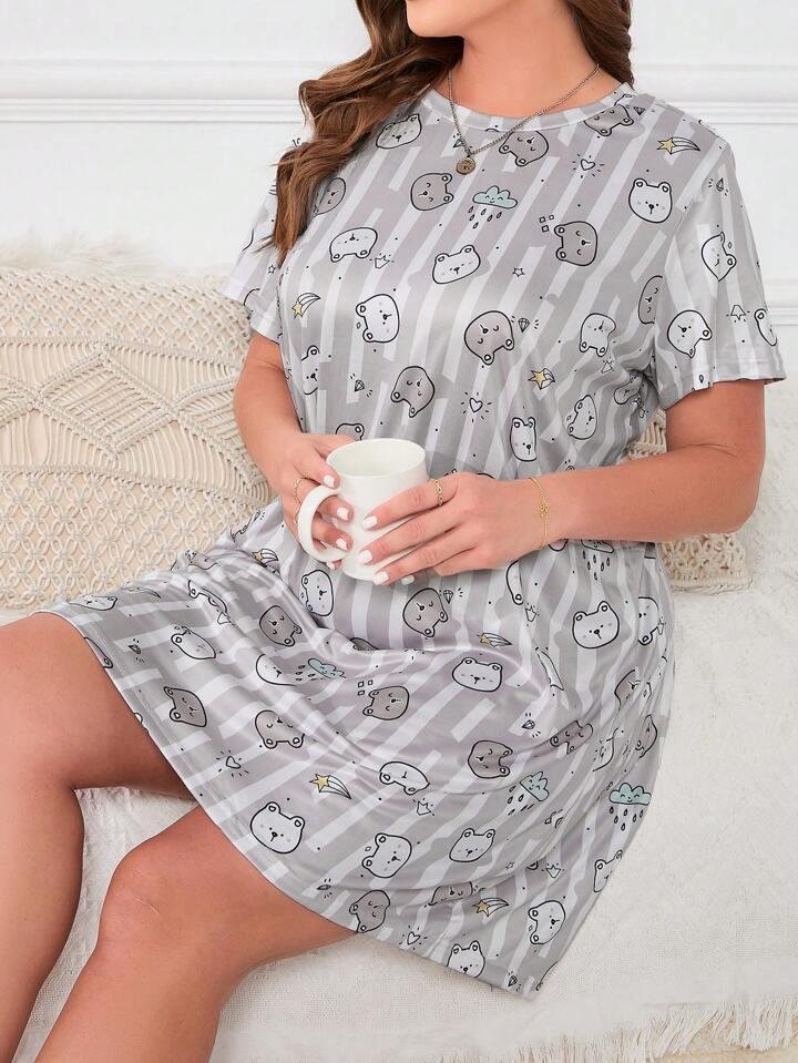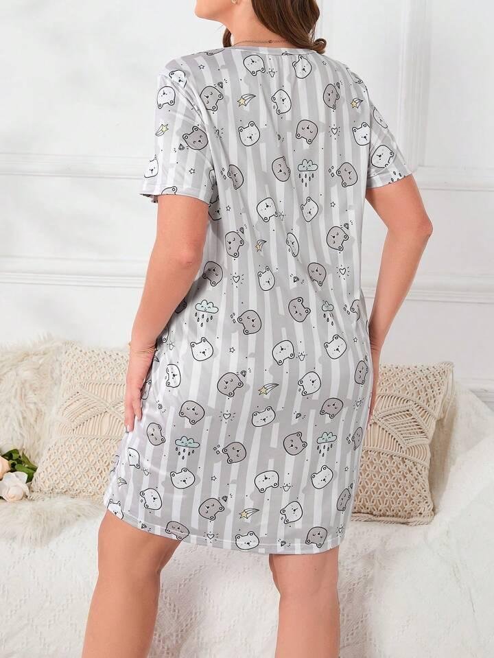Grey Cute Cartoon Print Short Nighty for Honeymoon