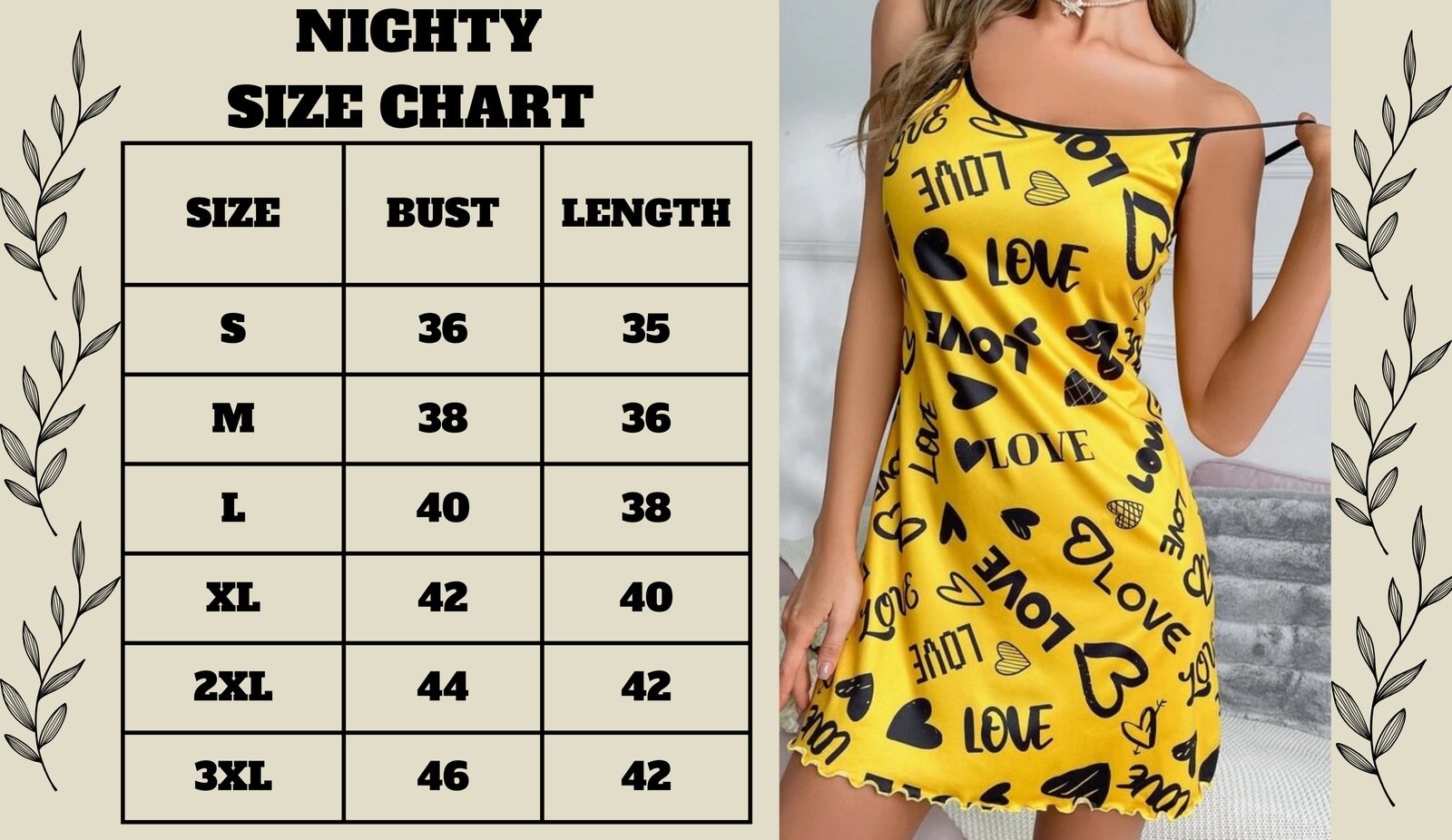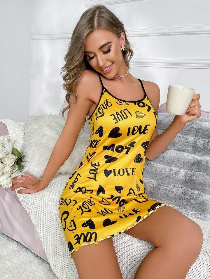 Buy Spaghetti Strap Mini Dress Cami Nighty - Crafted from soft, breathable fabric, this dress offers all-day comfort while keeping your look effortlessly stylish. The bright yellow base color adds a vibrant pop, while the contrast black print creates a striking visual appeal. Pair it with heels for a party look or sneakers for a casual chic vibe.