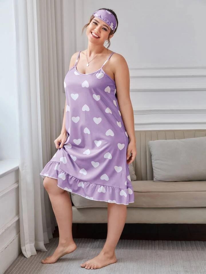 Lavender Heart Print Spaghetti Thin Strap Mini Dress