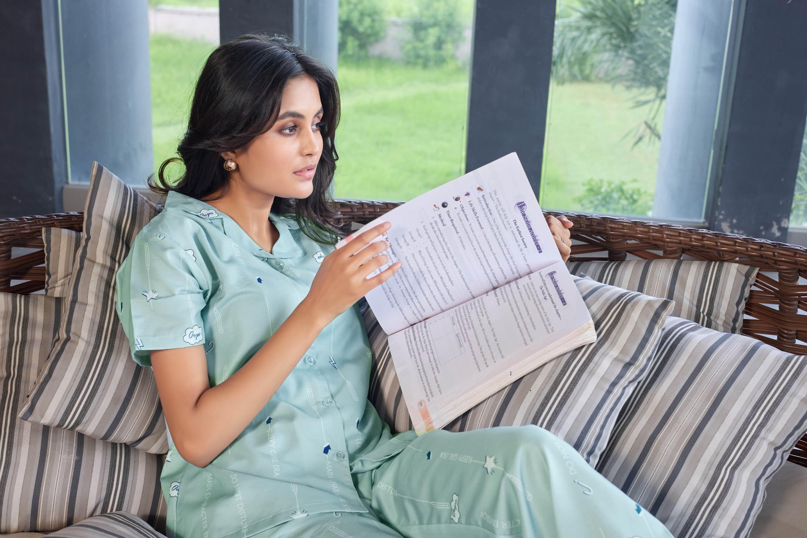 Mint Breeze Pastel Green White Cotton Pyjamas
